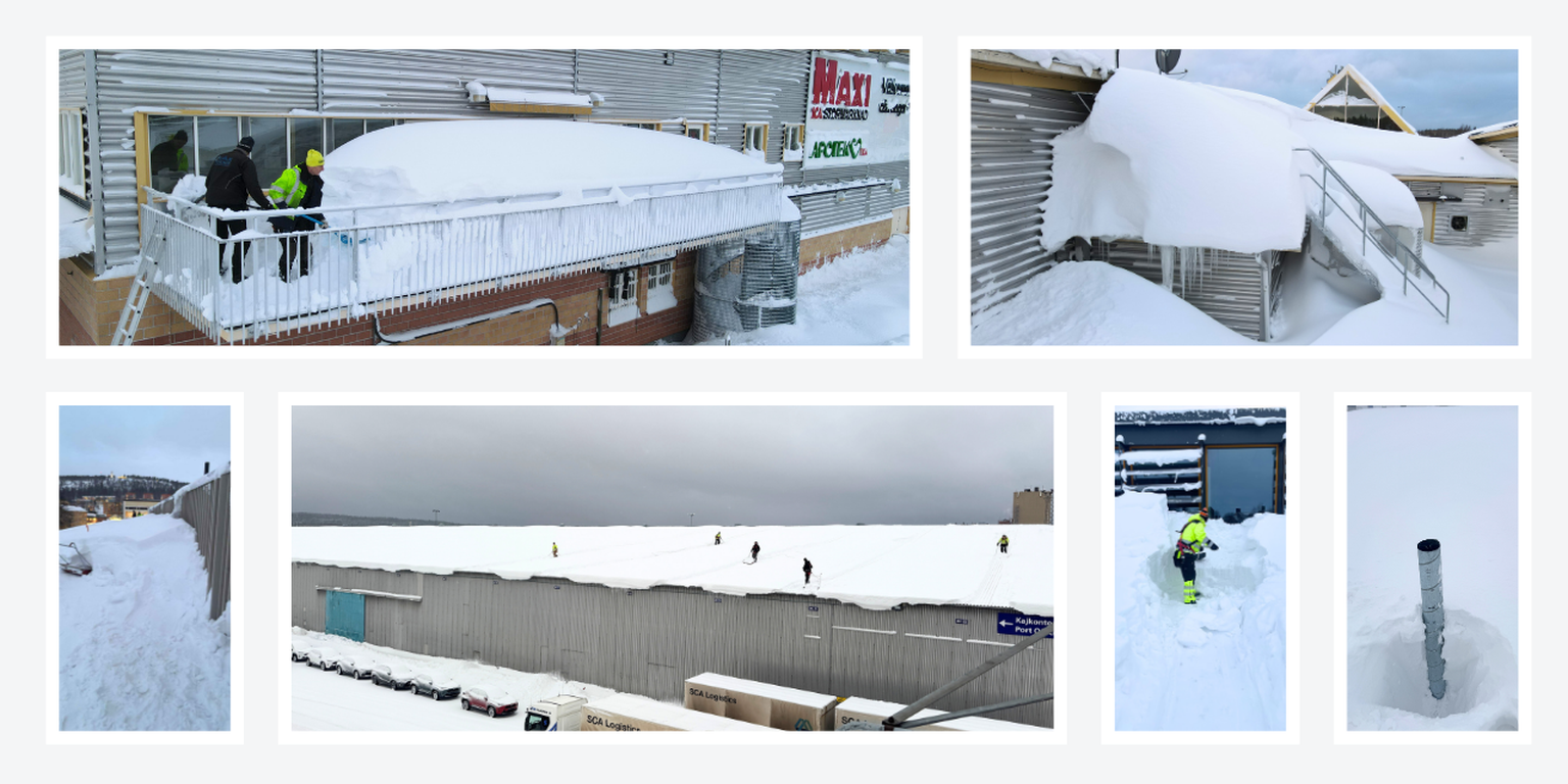 Den senaste tidens snöoväder har lett till stora mängder snö som belastar taken i hela landet, inte minst längs Norrlandskusten. När mycket snö faller på kort tid och kombineras med stark vind bildas tunga drivor som snabbt ökar belastningen. Då gäller det att agera i tid.
